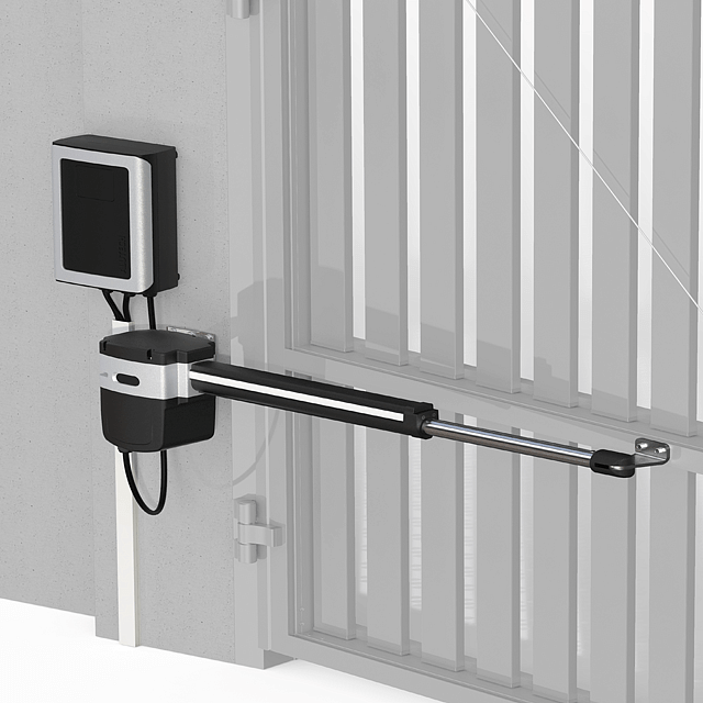 2 телескопических привода со встроенными концевыми выключателями и LED подсветкой. Расширенный функционал управления с блоком CU-AM (IP65).