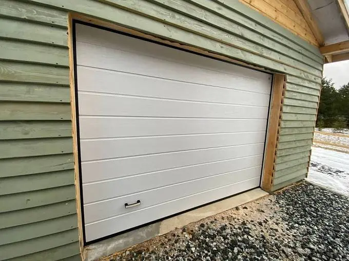 Установили секционные ворота, делюсь впечатлениями. Первое, что бросилось в глаза - качество материалов. Цвет выбрал нейтральный, отлично подходит к фасаду. Автоматика работает четко, тепло держат, спасибо!
