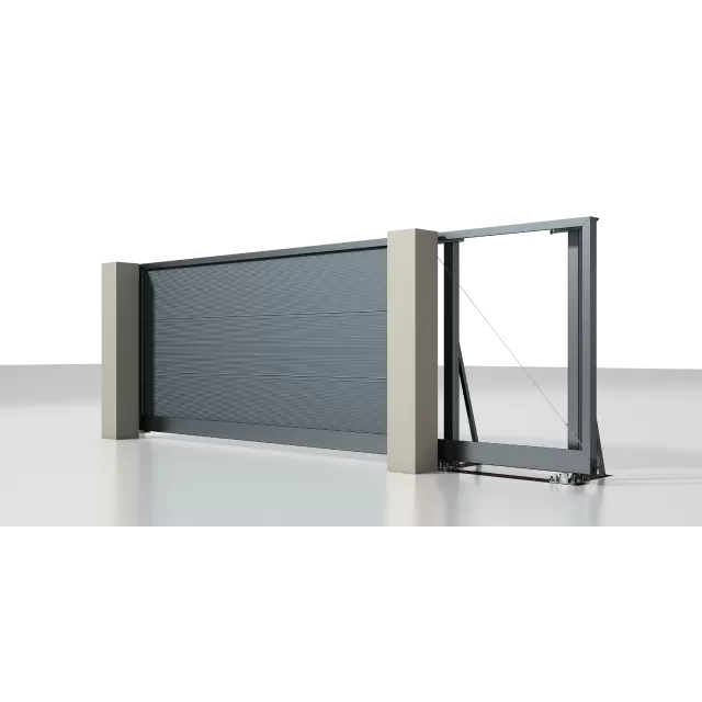 Совмещение направляющей шины с рамой в единый элемент увеличивает жёсткость конструкции и препятствует образованию перекосов. В направляющей шине предусмотрен «козырек» для фиксации зубчатой рейки и установки автоматики.